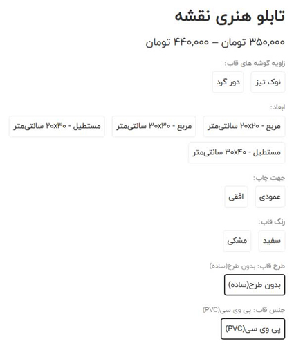 با انتخاب این گزینه ها، مشخصات تابلو هنری مد نظر خود را انتخاب فرمایید.